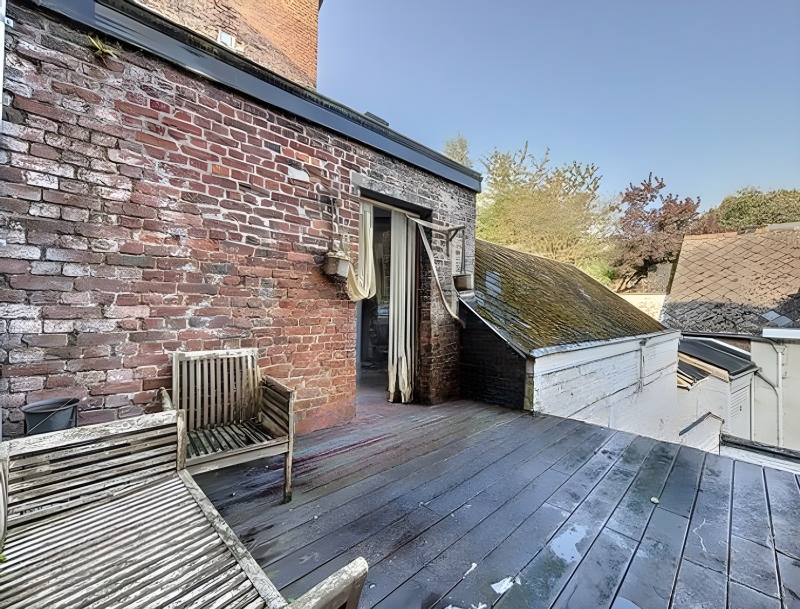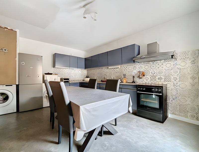 1er étage :un séjour en L spacieux et lumineux avec parquet massif, une cuisine équipée avec coin repas donnant directement accès à une terrasse.